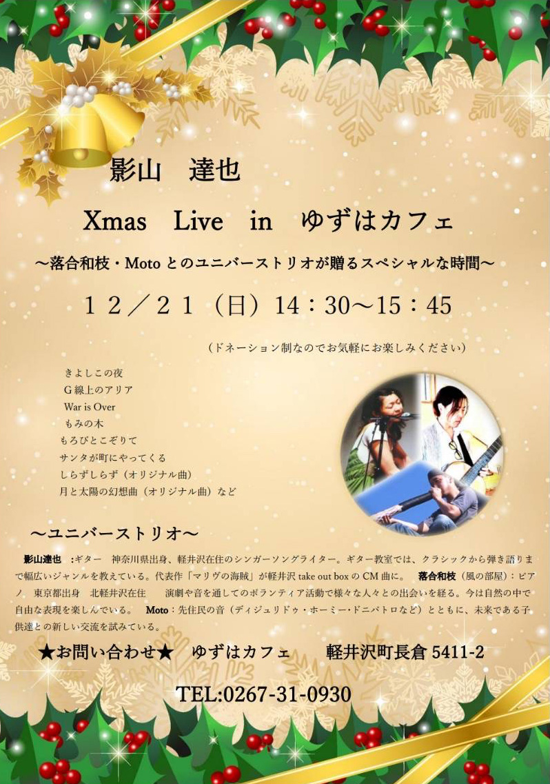 クリスマスライブ開催のお知らせ@ゆずはcafe