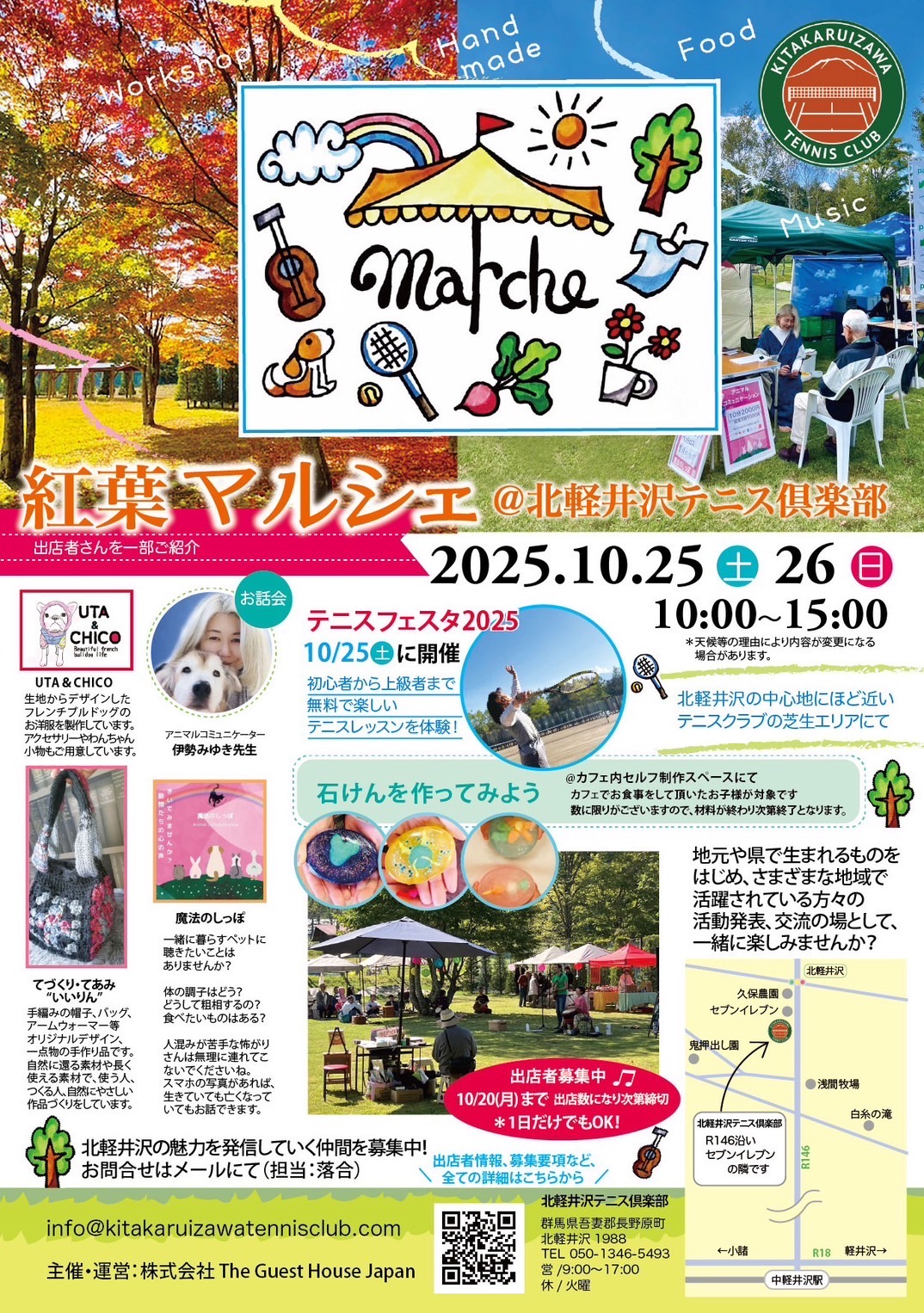 北軽井沢テニス倶楽部で開催される「紅葉マルシェ」にてライブを開催します。